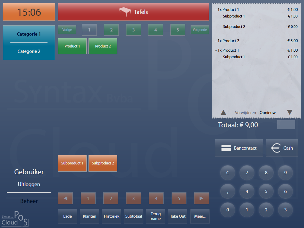 Logingegevens voor testdoeleinden of een operationele klant kan u aanvragen via info@cloudpos.be
